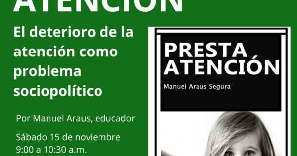29/10/20252580Reflexión en torno al libro de las ediciones Voz de los sin Voz PRESTA ATENCIÓN. El deterioro de la atención como problema sociopolítico. Aportación realizada por Manuel Araus, educador, responsable del equipo que ha elaborado la publicación. Envía el formulario para recibir el enlace de zoom.